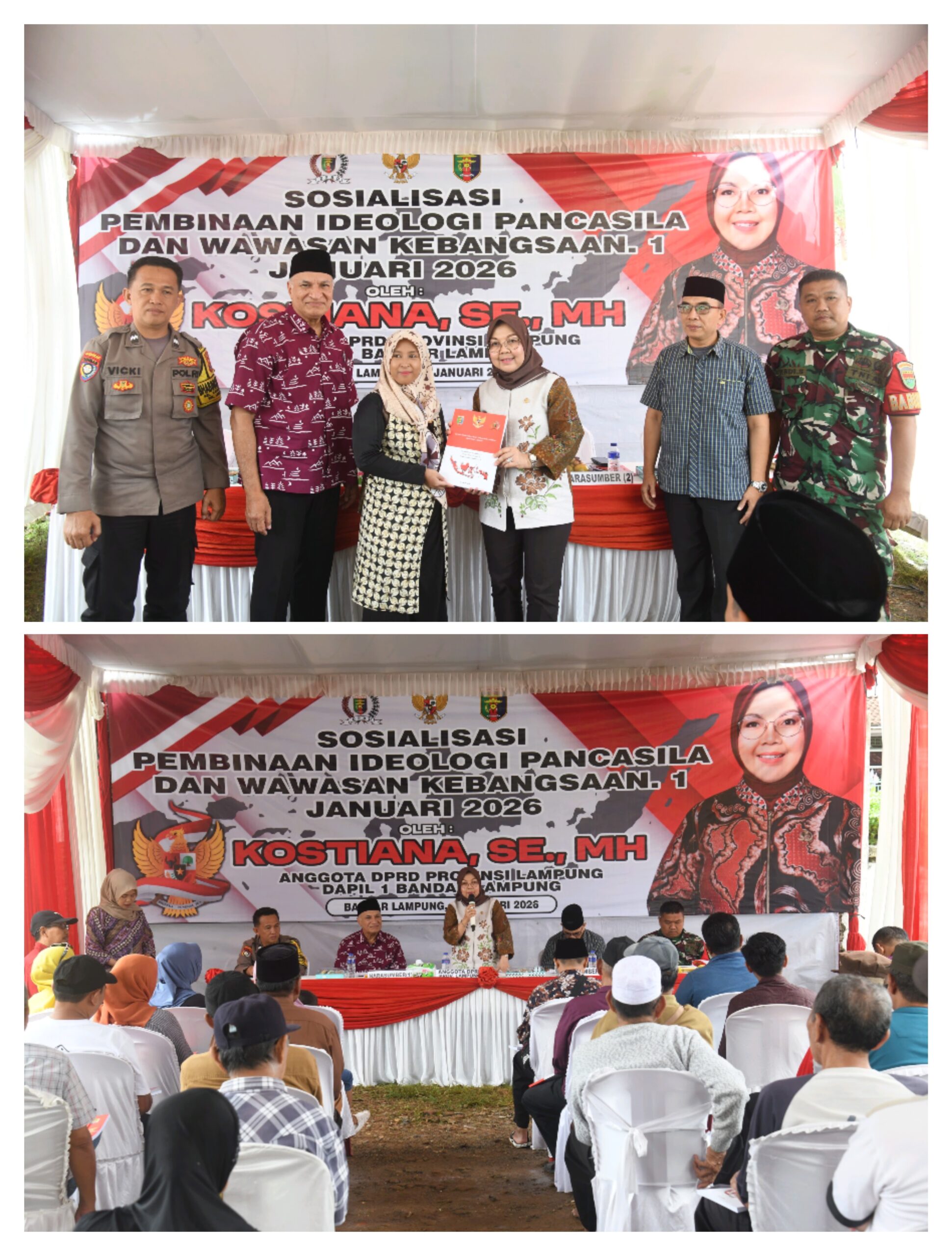 BANDARLAMPUNG  – DPRD Provinsi Lampung melaksanakan kegiatan Sosialisasi Pembinaan Ideologi Pancasila pada 17–18 Januari 2026.Kegiatan ini dilaksanakan oleh Pimpinan dan Anggota DPRD Provinsi Lampung Daerah Pemilihan (Dapil) I di wilayah daerah pemilihannya Kota Bandar Lampung.