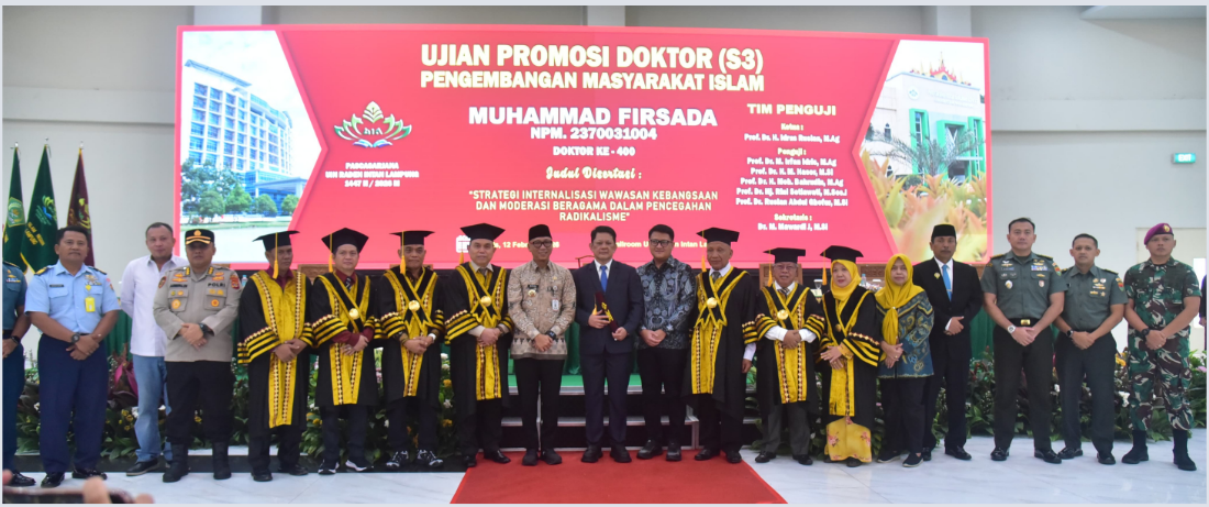 Disertasinya sangat relevan karena membahas moderasi beragama dan pencegahan radikalisasi serta terorisme. Mudah-mudahan kajian ini dapat menjadi referensi yang mendorong upaya bersama dalam menekan penyebaran radikalisme dan terorisme di Provinsi Lampung,” ujar Giri Akbar.