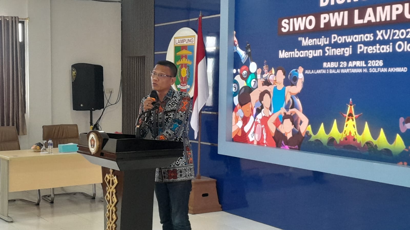 Komitmen tersebut mengemuka dalam Diskusi Olahraga bertema “Menuju Porwanas XV Tahun 2027: Membangun Sinergi Prestasi Olahraga” yang digelar PWI Provinsi Lampung, Selasa (29/4/2026).